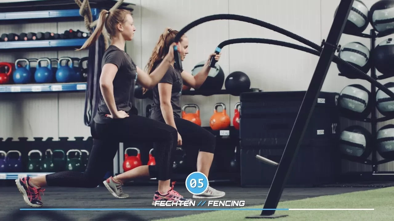 In the second part, you can train with us in real-time! The workout part has a countdown that tells you when a set starts and when you can pause. This will give you the perfect introduction to Battle Rope training.